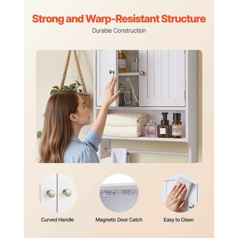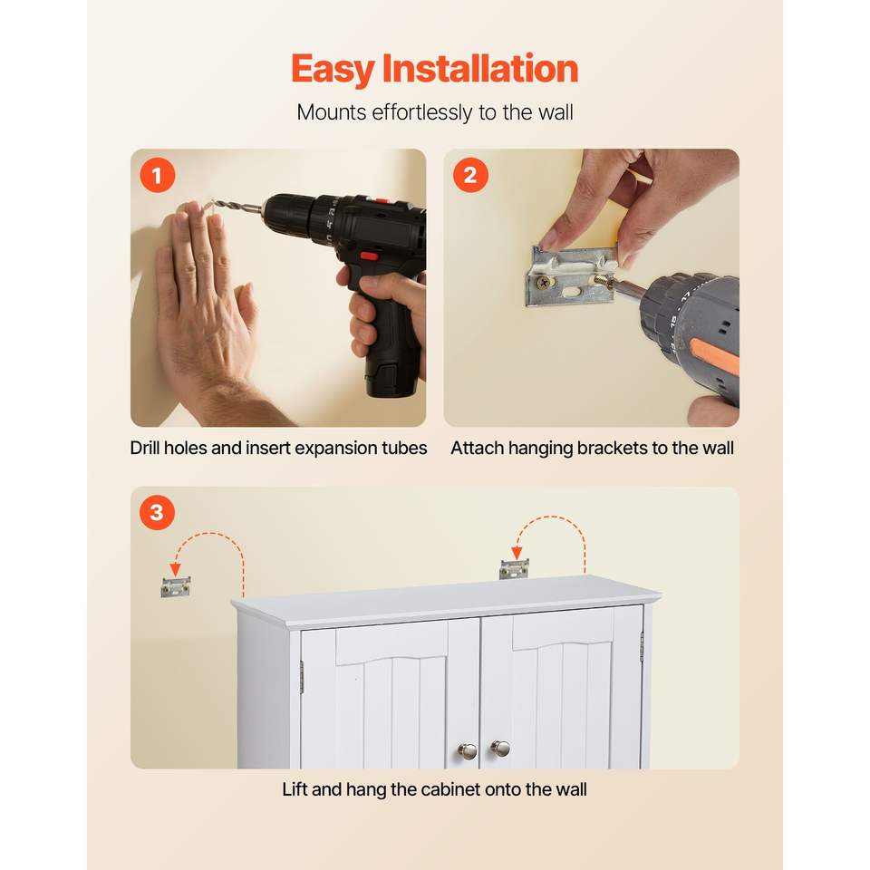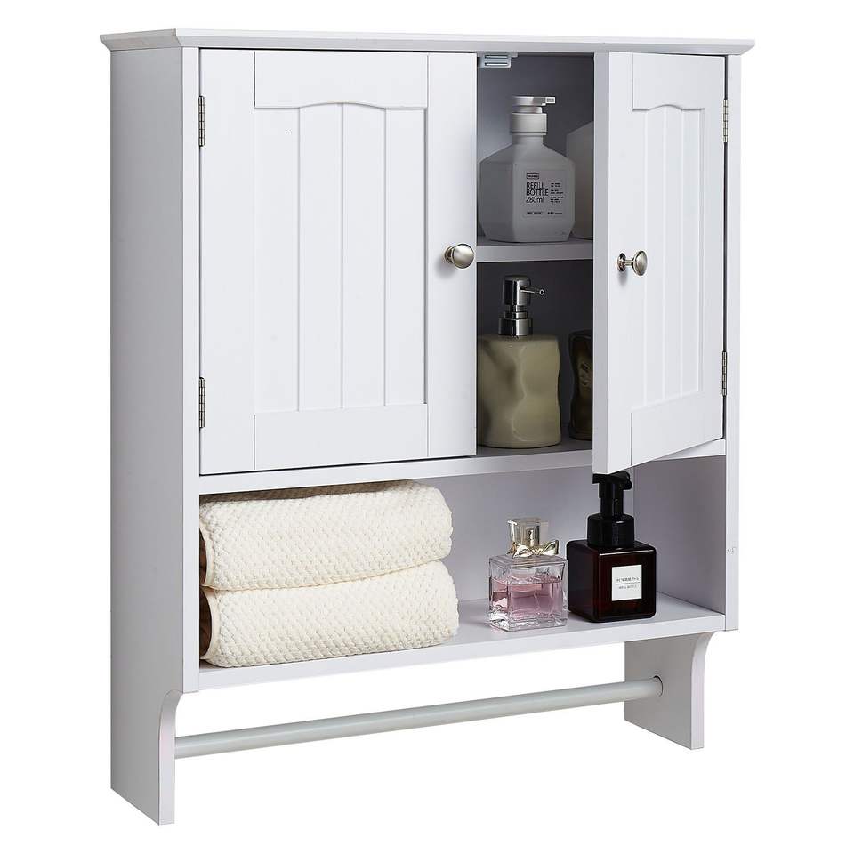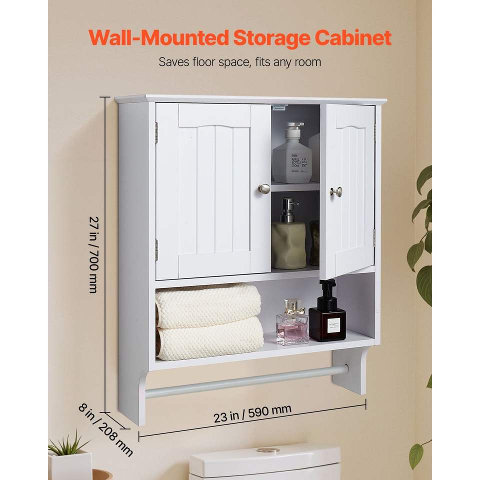 Armadietto da Bagno a Parete con 2 Ante e Ripiani Regolabili, Organizzatore Sospeso per Toilette, Armadietto Portamedicinali, Mobile da Bagno a Parete