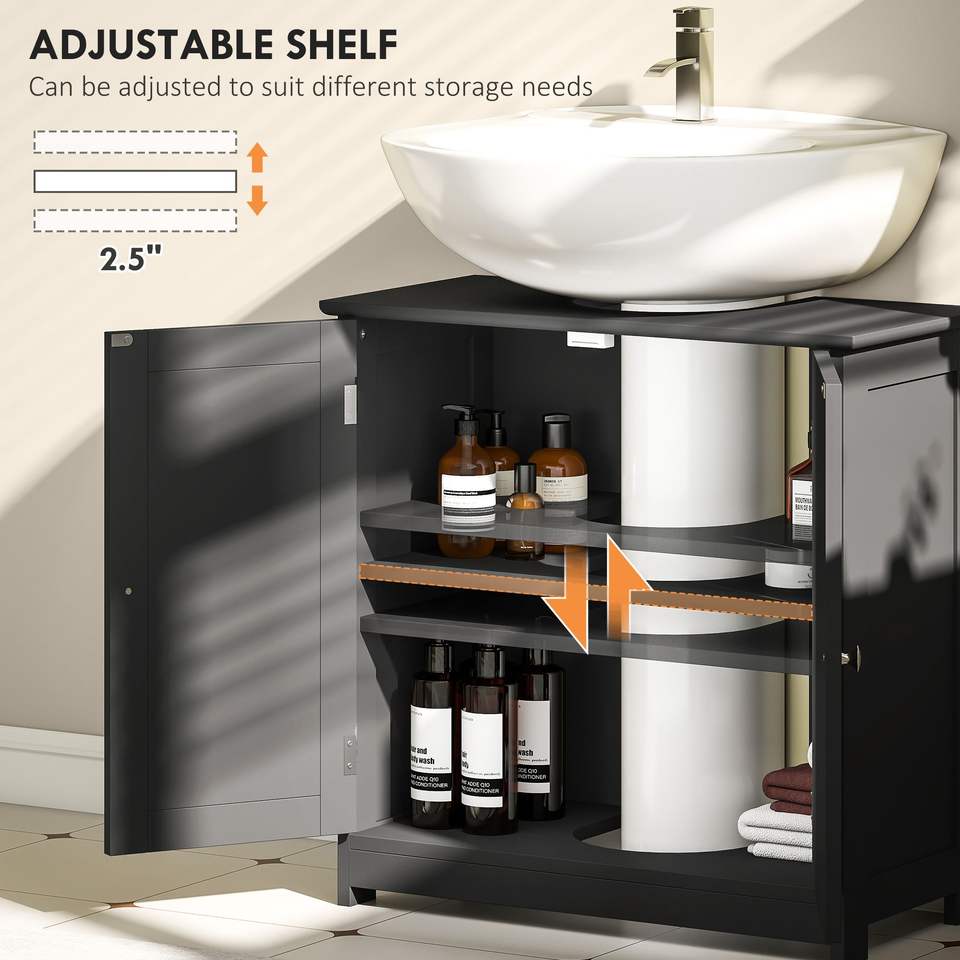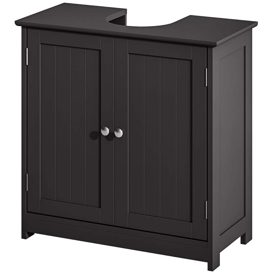 Mobiletto lavabo a colonna nero con ripiano regolabile, mobiletto bagno a U con soluzione di archiviazione comoda