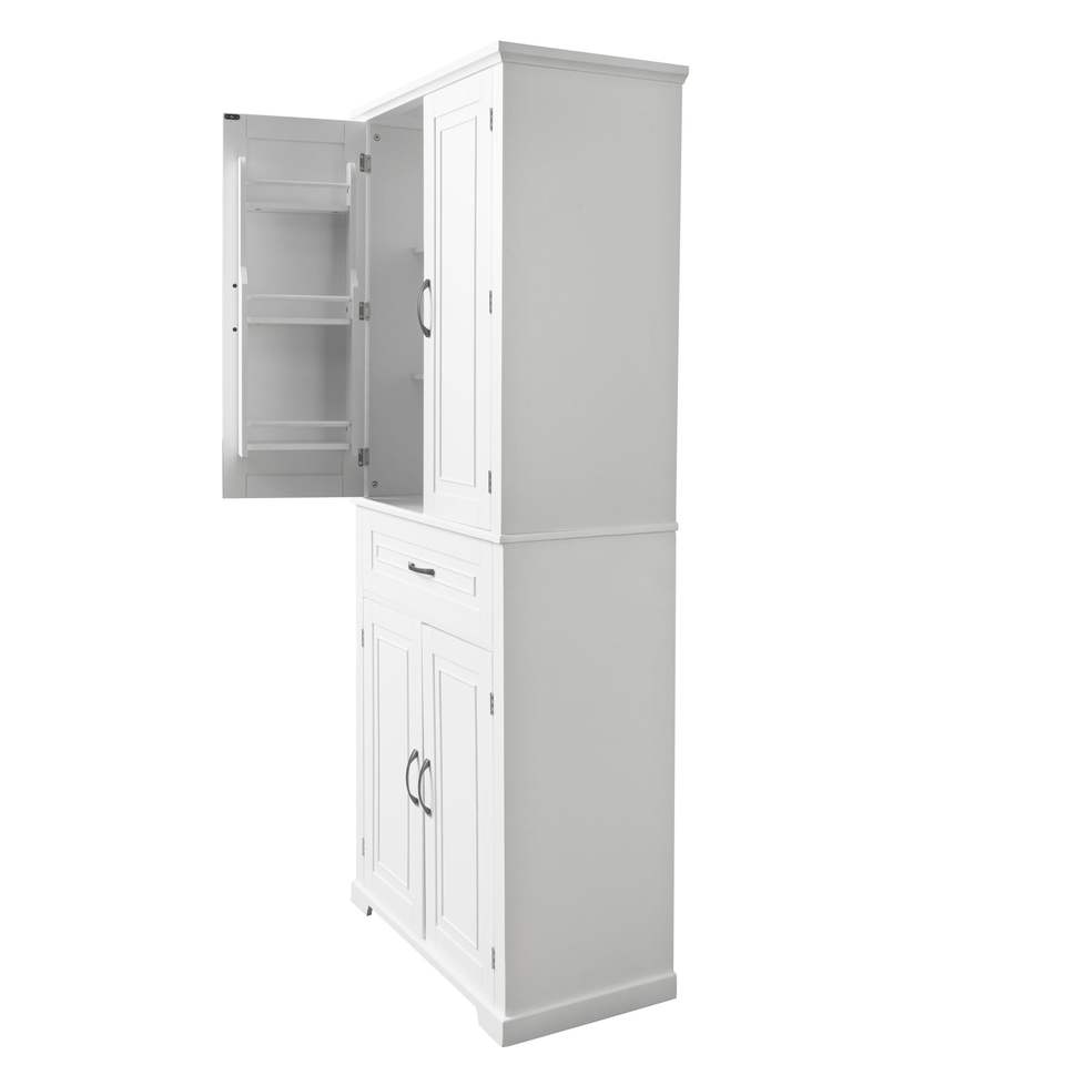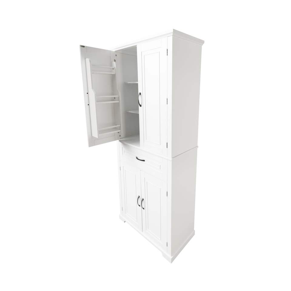 Mobiletto da Bagno Bianco con Ripiani Regolabili, Ante e Cassetto, Multiuso per Cucina