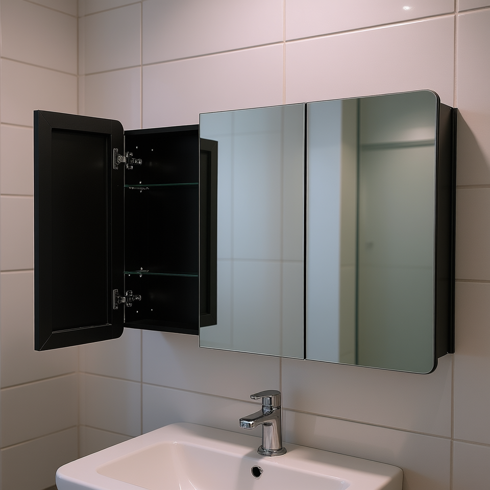 Adjustable Shelves 25.5 X 40 Mirror Medicine Cabinet Black Frame Wall Hanging for Bathrooms