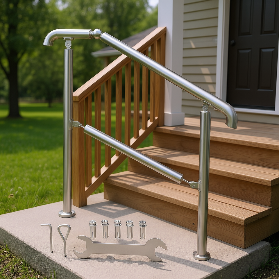 Corrimano Regolabile in Acciaio Inox per Portico 3-3,5 Piedi, Ringhiera Transitoria per Interni ed Esterni, Kit di Installazione Fai-da-Te