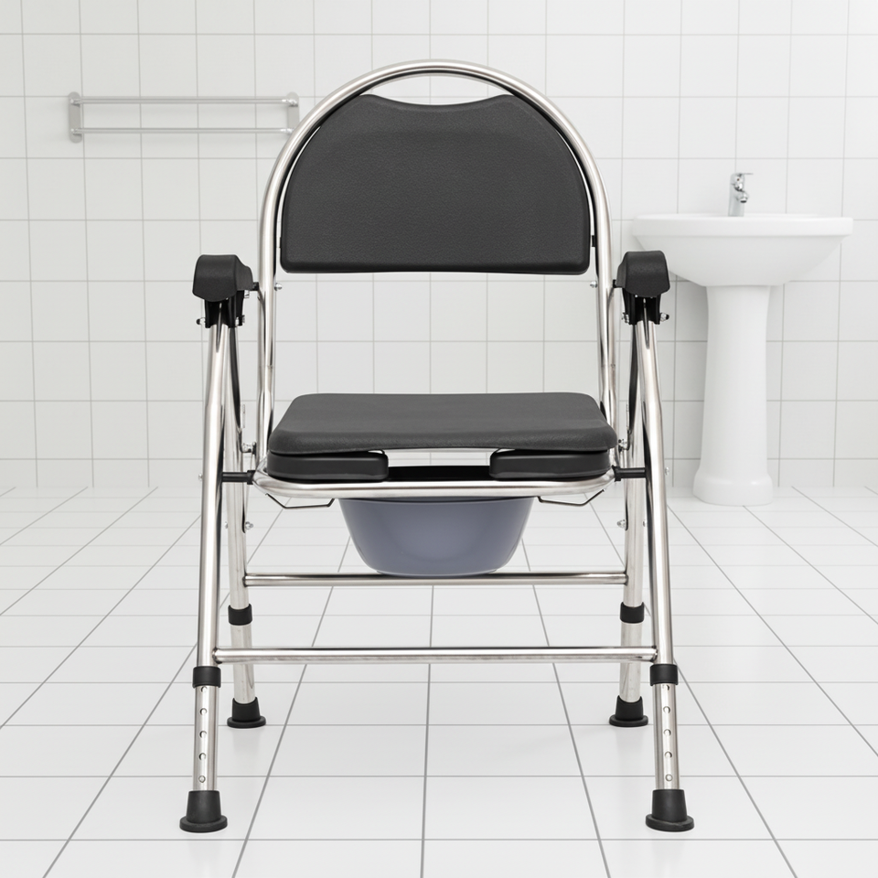 Sedia da Toilette Regolabile in Acciaio Inossidabile per Anziani e Disabili, Adatta sia per Doccia che per Uso Domestico