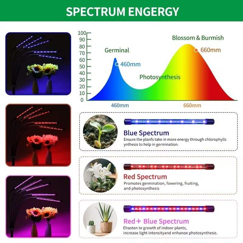 Lampada da Terra Regolabile per Coltivazione Indoor con Luce a Spettro Completo 80 LED, 5 Livelli di Regolazione (20%-100%), Timer 3/9/12 Ore