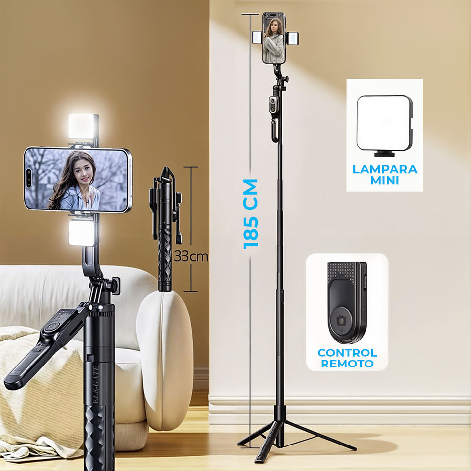 Bastone Selfie Telescopico Regolabile con Luce di Riempimento, Supporto per Telefono e Telecomando per Livestreaming e Utilizzo come Treppiede