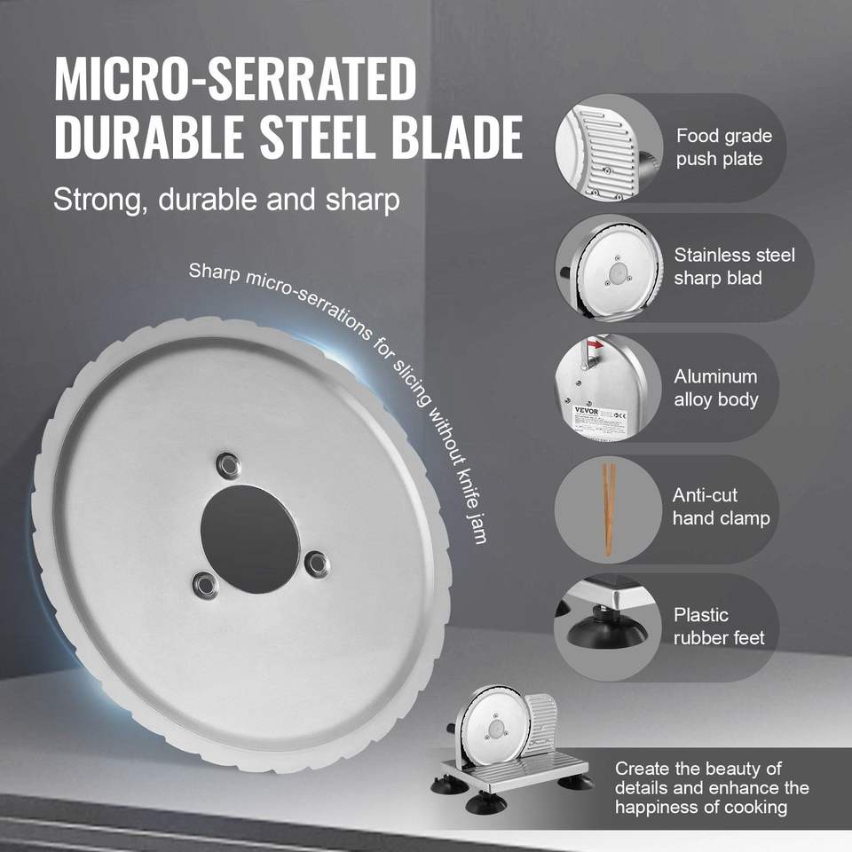 Affettatrice Manuale per Pane a Spessore Regolabile, Lama in Acciaio Inox Micro-Serrata, Utensile per Tagliare Formaggio e Burro 0-6 Pollici