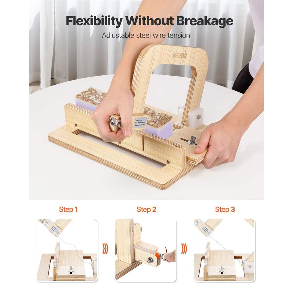 Taglierina per Sapone in Legno a Spessore Regolabile 0-2 Pollici, Affettatrice per Sapone in Acciaio Inossidabile con Fili Extra e Tensione del Filo Regolabile