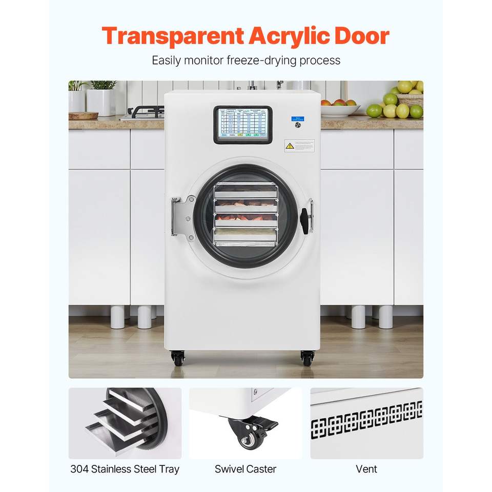 Essiccatore a Congelamento con Timer Regolabile, Capacità 4-6 kg/lotto, 4 Vassoi per Essiccazione Frutta e Verdura
