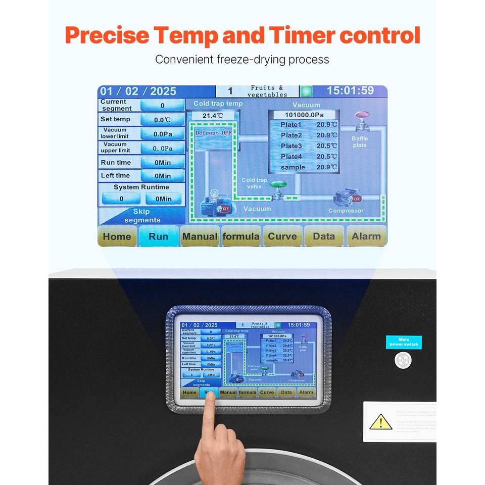 Essiccatore a Congelamento con Timer Regolabile, Capacità 4-6 kg/lotto, 4 Vassoi per Essiccazione Frutta e Verdura