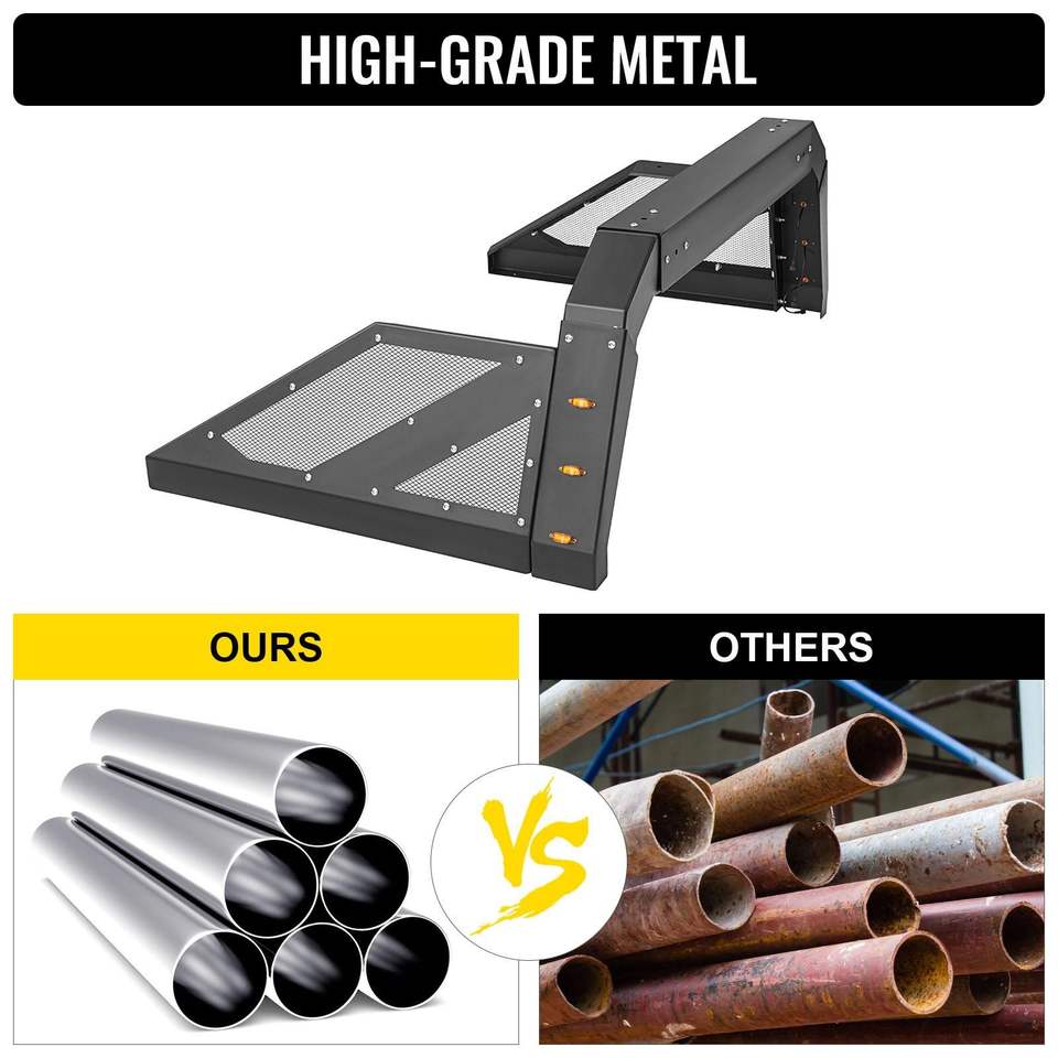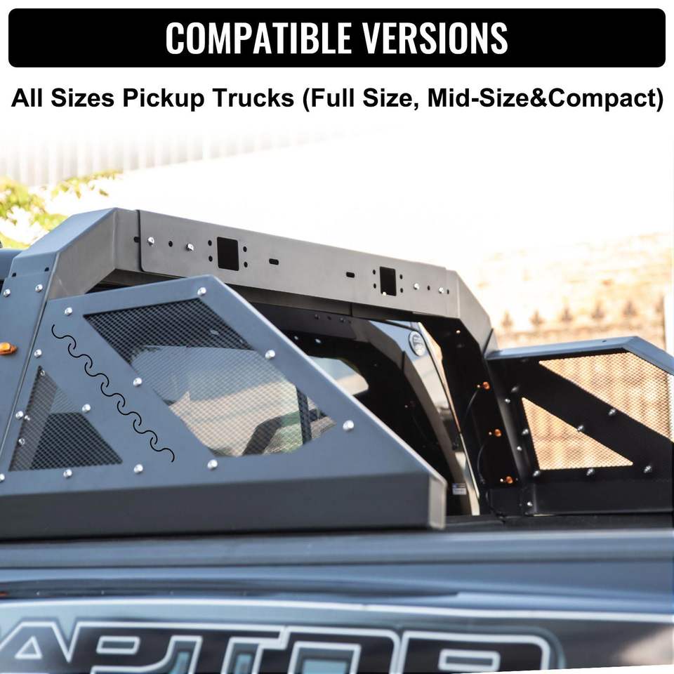 Adjustable Truck Roll Bar with 6 Amber Auxiliary Side Marker Lamps Universal Chase Rack for Pickup Trucks