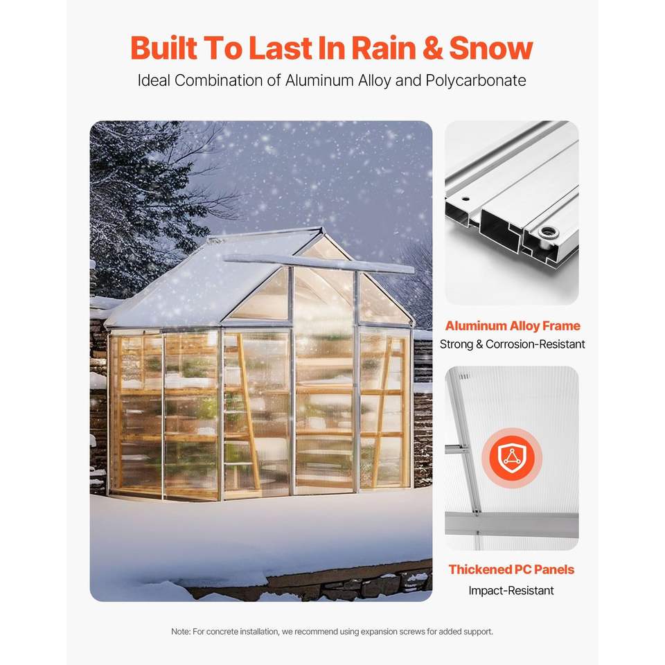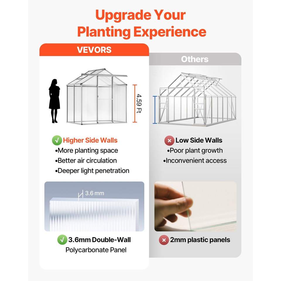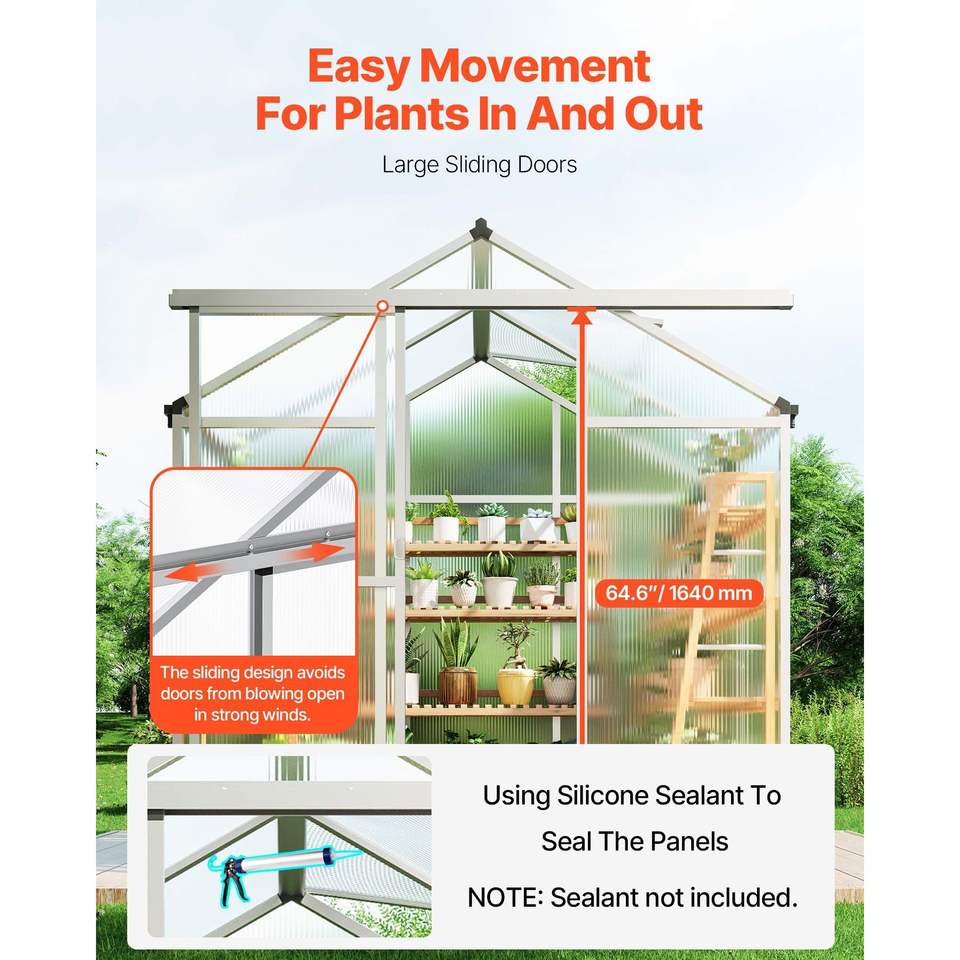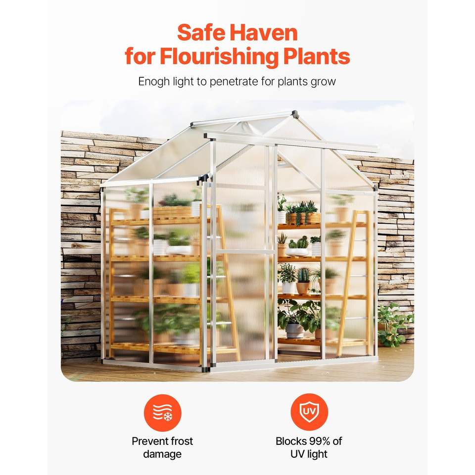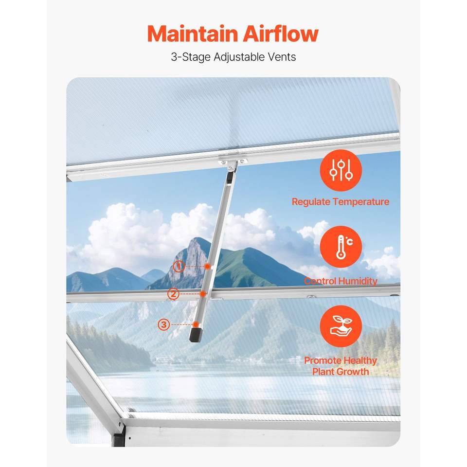 Serra da Giardino Regolabile con Finestra di Ventilazione 6 x 4 Piedi in Policarbonato, Stile Padiglione con Porta Scorrevole