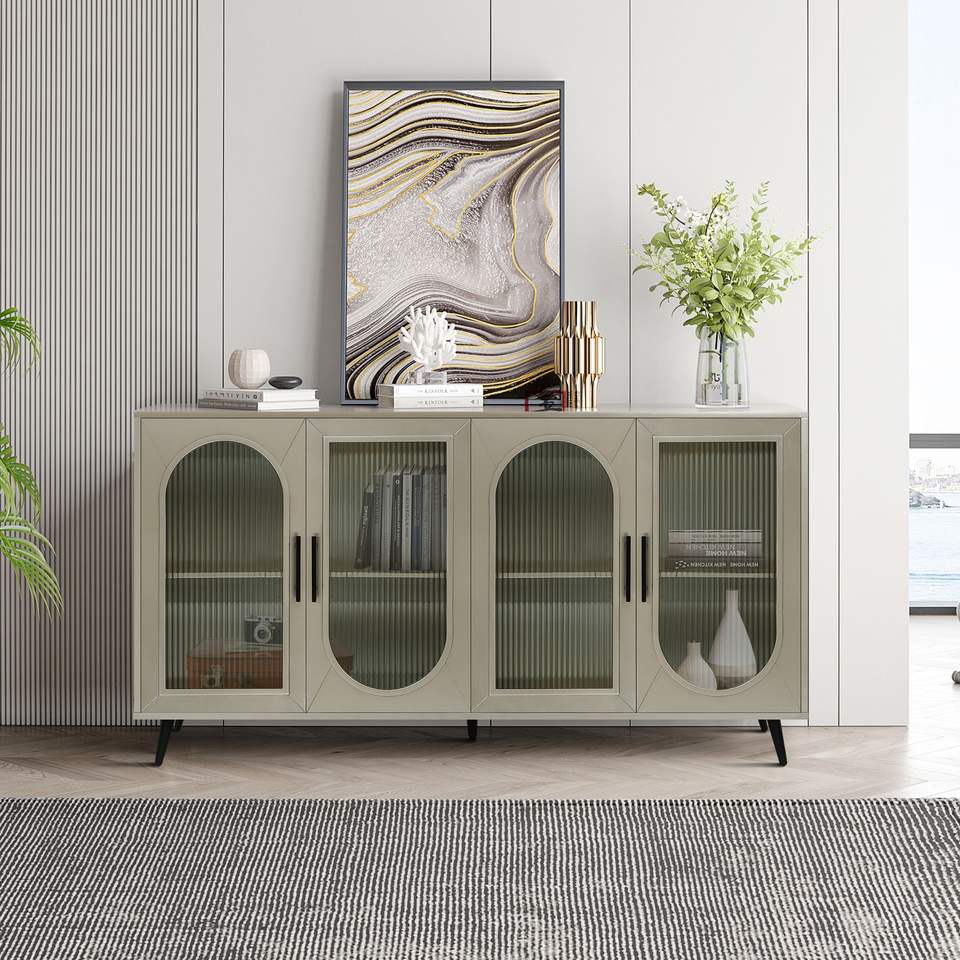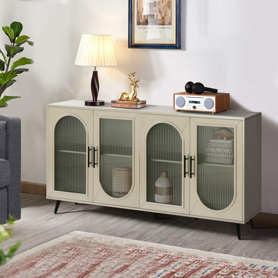 Mobile TV Regolabile in Legno per TV da 65+ Pollici, Mobile Contenitore con Ripiani, Consolle TV Multimediale per Soggiorno e Camera da Letto