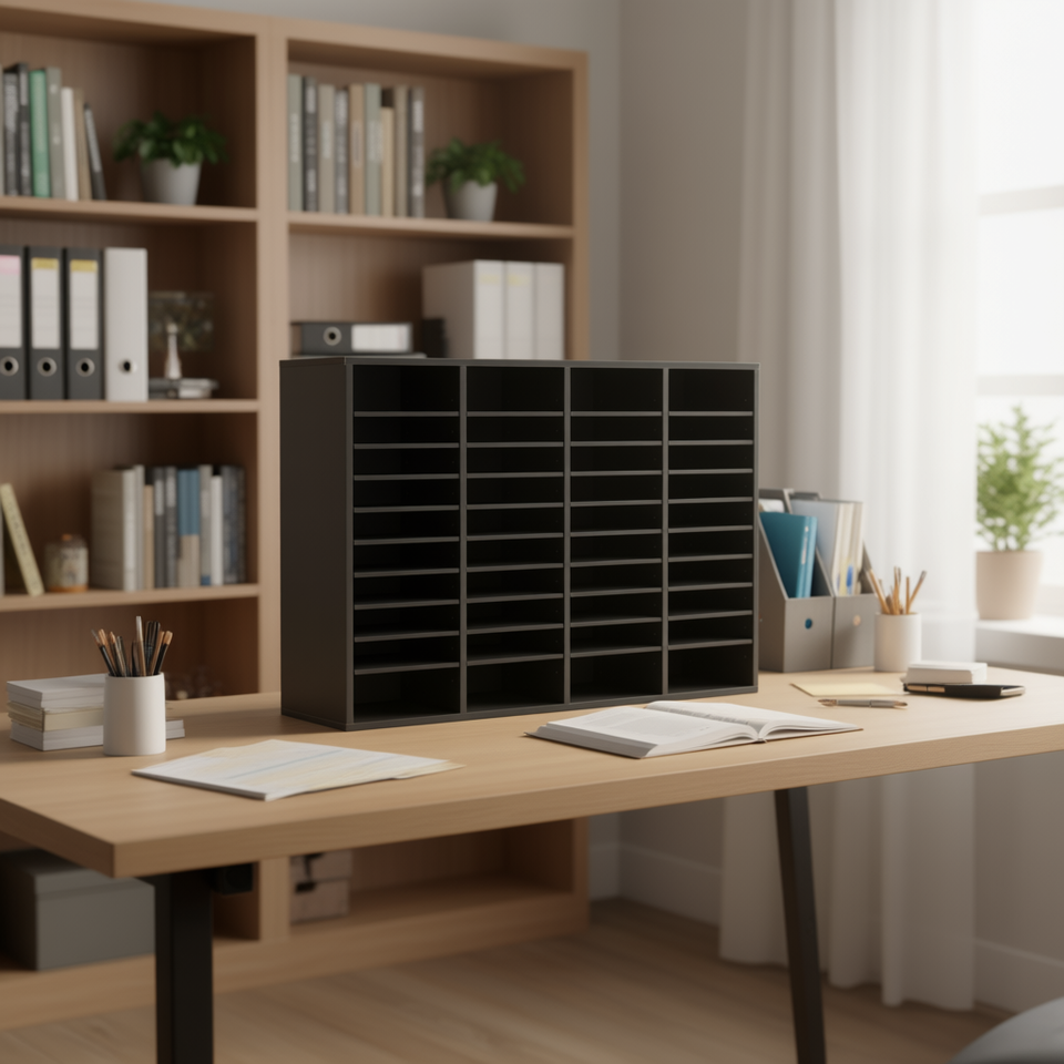 Organizzatore per Posta in Legno Regolabile con 36 Scomparti, Portadocumenti per Ufficio, Casa, Aula in Fibra di Media Densità