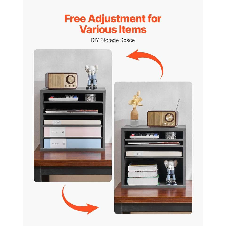 Organizzatore per Ufficio in Legno Regolabile con 5 Scomparti, Classificatore per Documenti in MDF