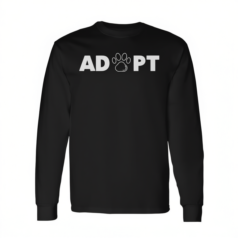 Maglietta a Maniche Lunghe in Cotone Ecologico con Stampa Serigrafica 'Adopt Pawprint' per Cani e per Soccorso di Animali Domestici
