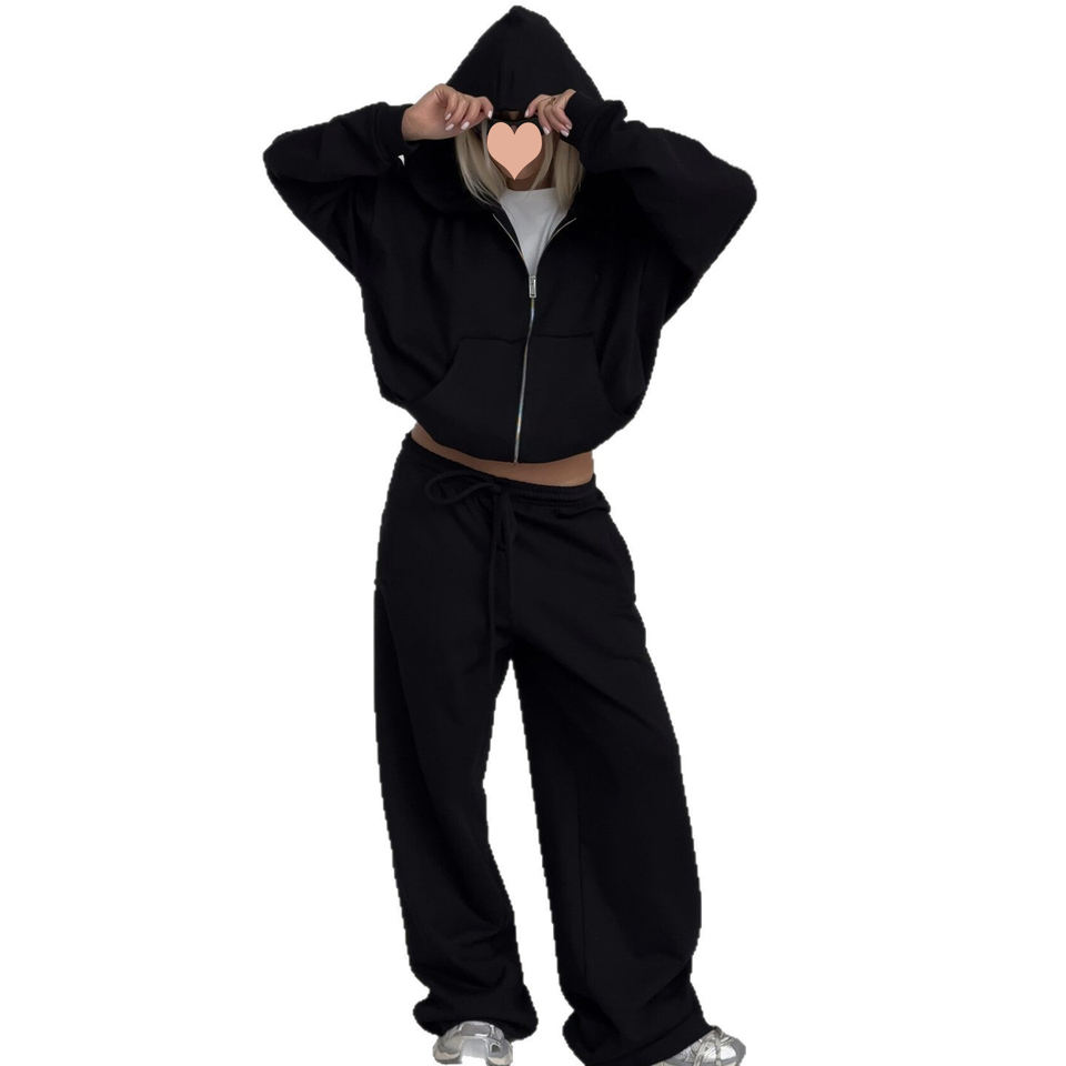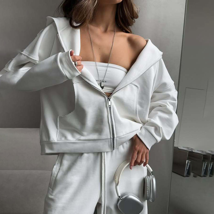 Adorable Sweet Tone Women's Zip up Hoodie With Tie Waist Bottoms Two Piece Suit for Modern Fashion Lovers