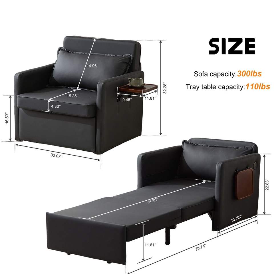 Divano Letto Convertibile 3-in-1 per Adulti con Tavolino Pieghevole e Porta USB Type-C