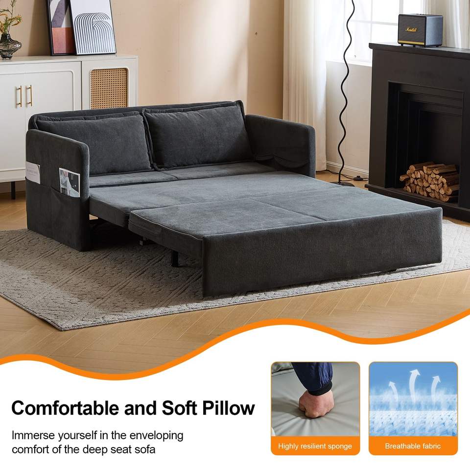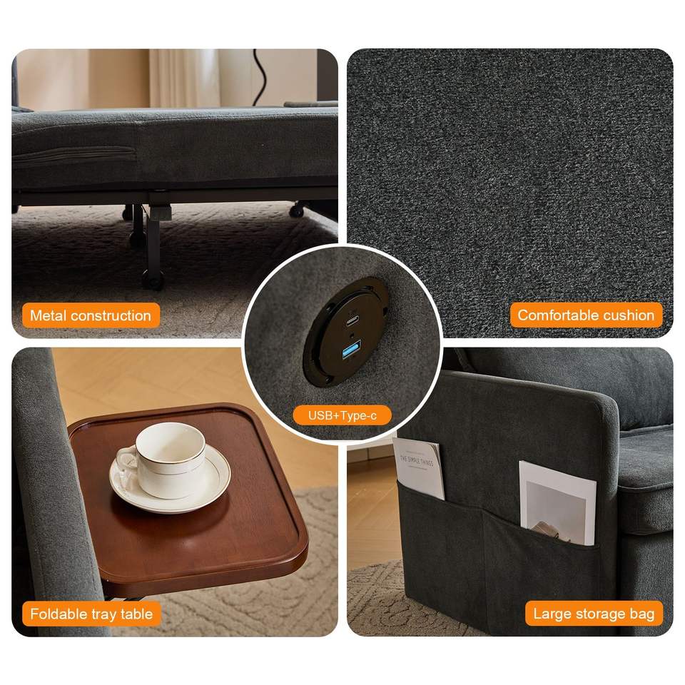 Divano Letto Convertibile 3-in-1 per Adulti con Tavolino Pieghevole e Porta USB Type-C