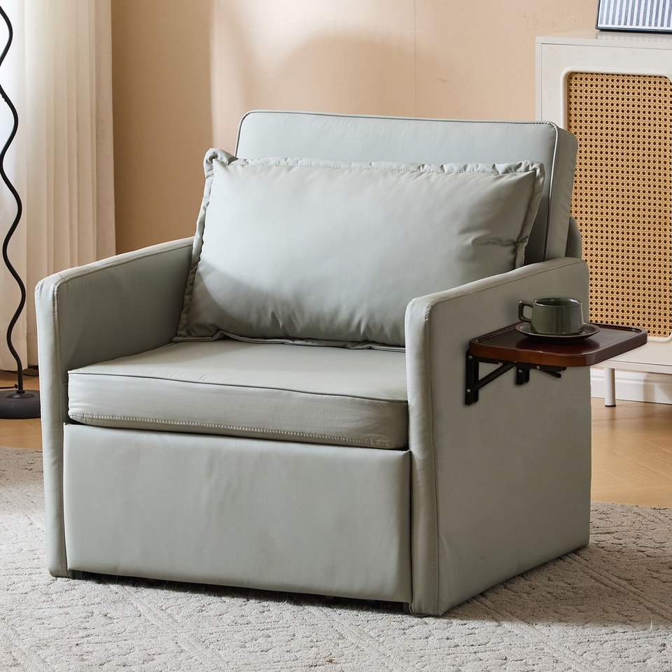 Divano Letto Convertibile 3-in-1 per Adulti con Tavolino Pieghevole e Porta USB Type-C