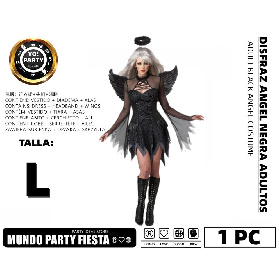 Adult Black Angel Costume Set #12018 for Cosplay Featuring Skirt Headband Top