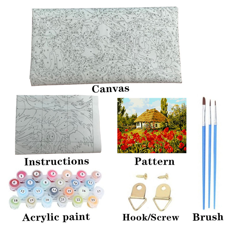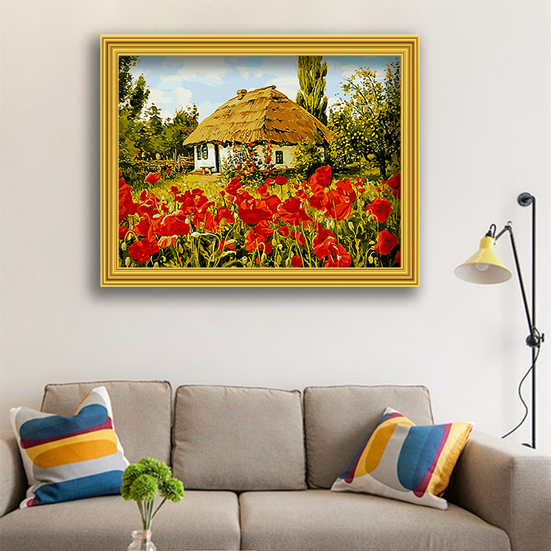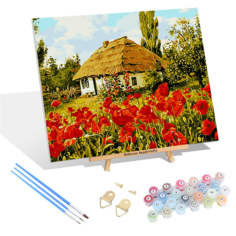 Pittura colorata per adulti con numeri babilonia Premium casa fiore di papavero 40*50CM pittura con numeri
