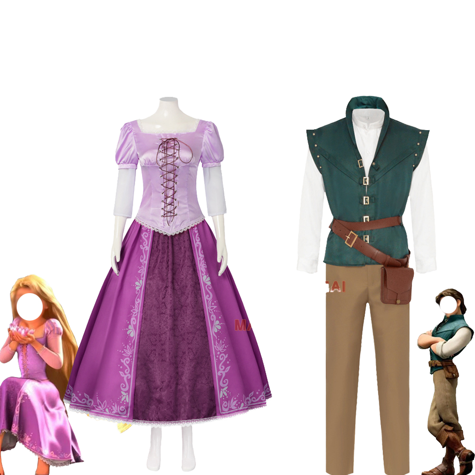 Set Costume di Halloween per Adulti, Travestimento da Rapunzel per Donne e Flynn Rider per Uomini, Ispirato a Film TV e Anime, Abito Completo per Cosplay