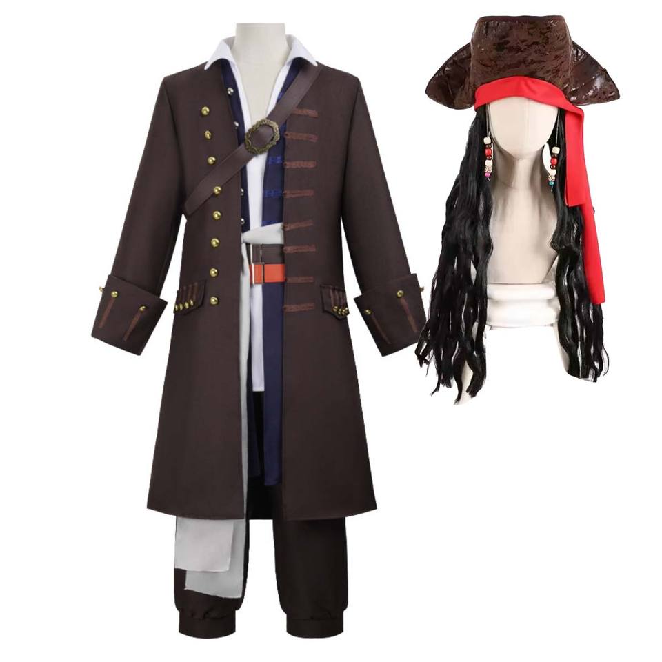 Costume cosplay pirata Jack Sparrow CARR-033, 85% poliestere, satin/cotone/tulle/organza, uomo, XS–3XL, 1 set, MOQ 2 pz