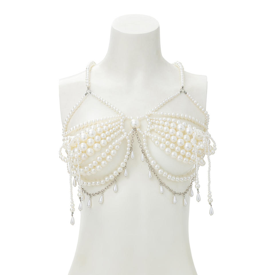 Top a catena con perline sexy per adulti, gioielli per il corpo, top con frange di perle per fidanzamento, matrimonio o regalo per feste in discoteca o in spiaggia