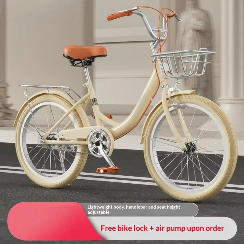 Adult Women's 20-inch/22-inch/24-inch High Carbon Steel Hard Frame Double V Brakes Lightweight Retro College Commuter Bicycle