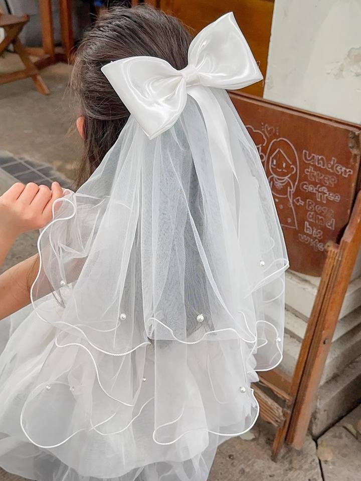 Decorazione per festa da ballo per adulti e bambini stile dolce con fiocco bianco fascia per capelli in tessuto per uso sposa