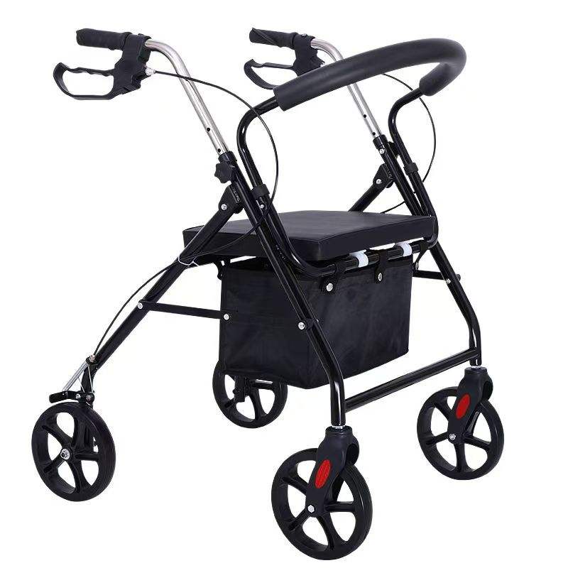 Adults Folding Rollator Walker with Steel Frame and Seat Elderly Rehabilitation Therapy Supply Assistive Wheel Walker