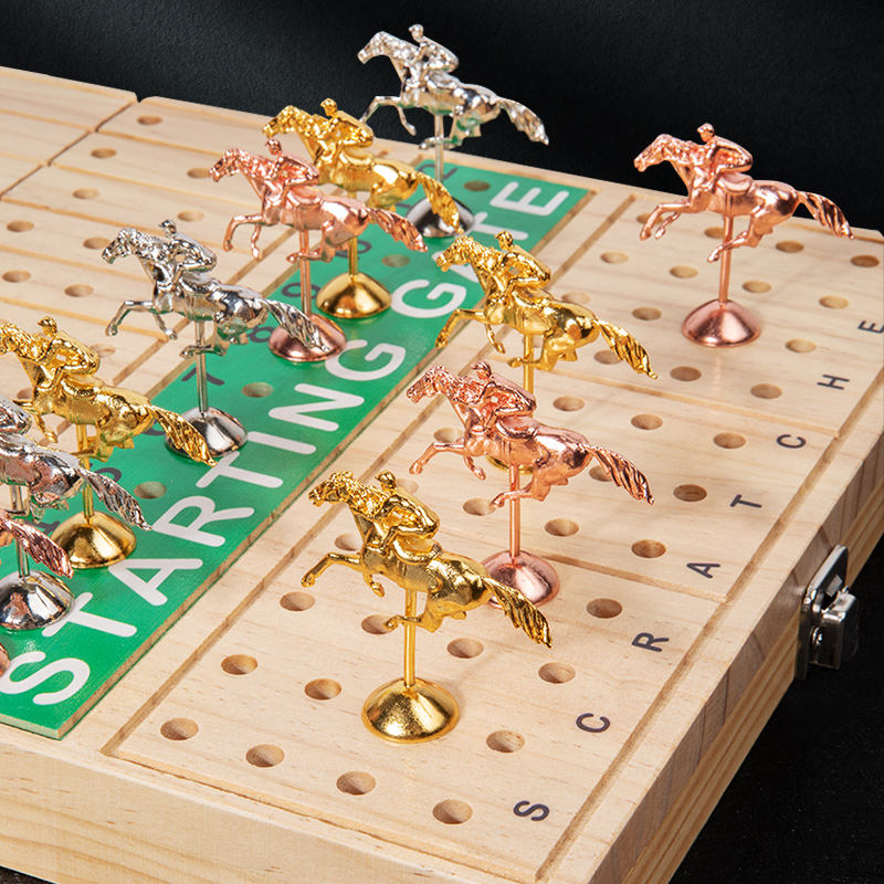Gioco da Tavolo di Corse di Cavalli in Legno Massiccio Pieghevole, Edizione Lusso per Adulti con Cavalli in Metallo
