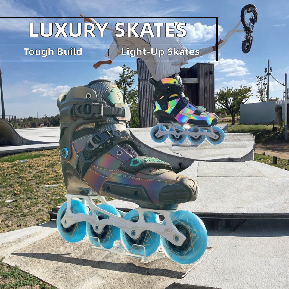Pattini in Linea Freestyle Avanzati in Fibra di Carbonio Luminosa con Ruote Lampeggianti Avanzate