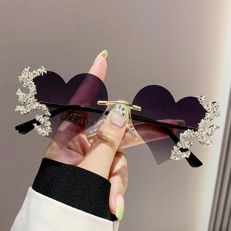 Occhiali da sole con cuore transfrontaliero tempestato di diamanti da donna con senso avanzato esagerava le lacrime d'amore per fotografare