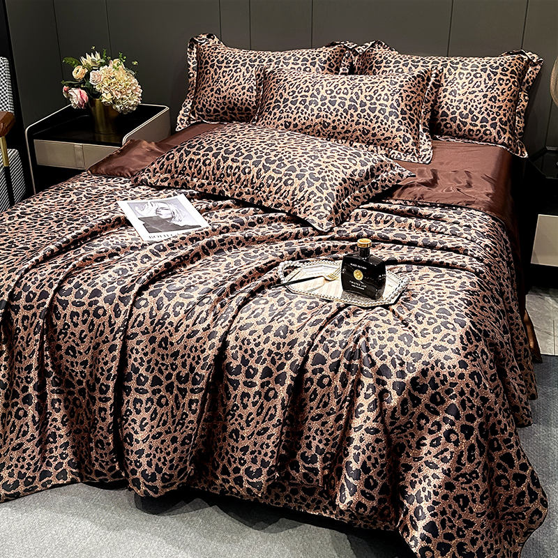 Set di biancheria da letto in seta lavata ad acqua da quattro pezzi estivi avanzati per dormire in puro colore liscio come la seta per camera da letto