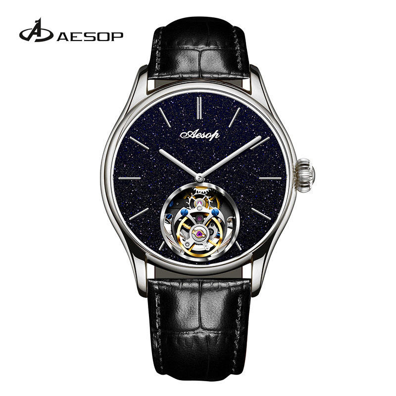 AESOP Orologio meccanico Tourbillon uomo, cassa acciaio inox 42,5 mm 12 mm, vetro zaffiro sintetico, riserva 55h, 5/10 ATM pz1