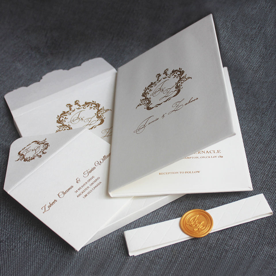 A prezzi accessibili di stile del libro duro della copertura inviti di nozze con il sigillo di cera con trapunta modello di goffratura