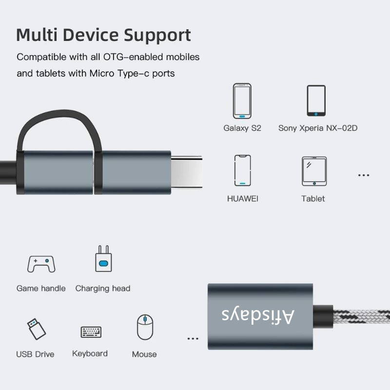 Adattatore Type-C in Lega di Alluminio Afisdays, Adattatore OTG per Telefoni Android, Adattatore USB a Type-C in Metallo