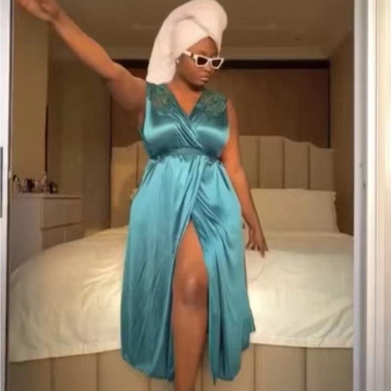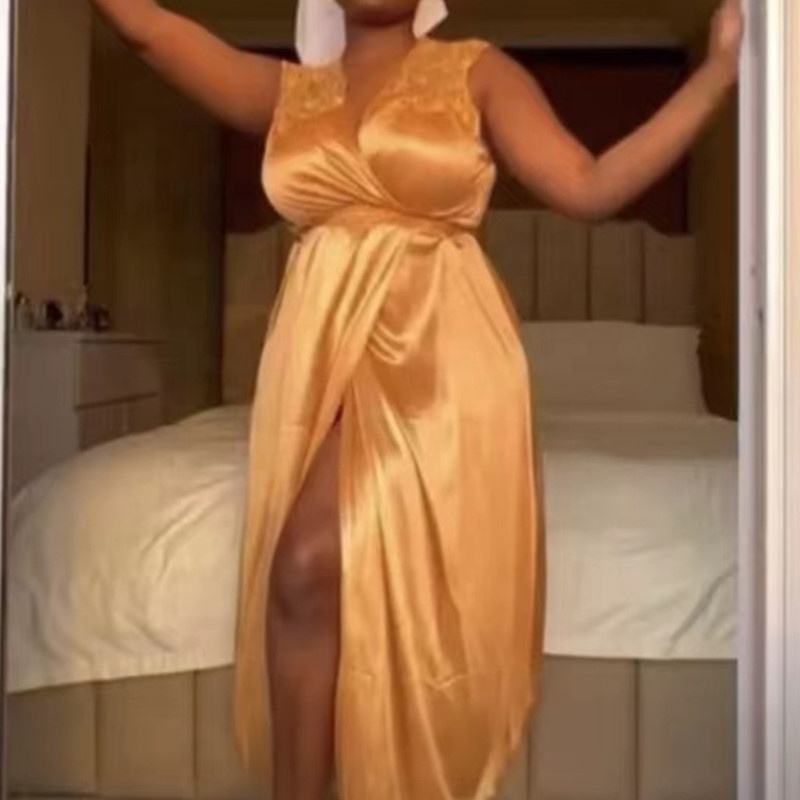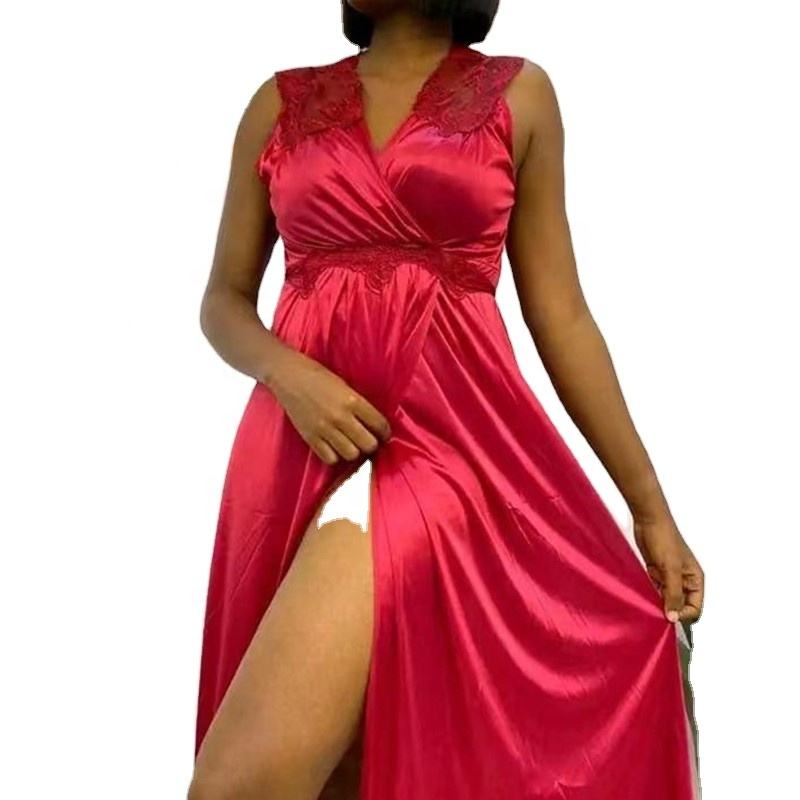 Africa Plus-size Silk Nightdress Sleeveless Lace Sexy Pajamas Home Dress Slit Seductive Long Satin Nightgown for Women Lingerie