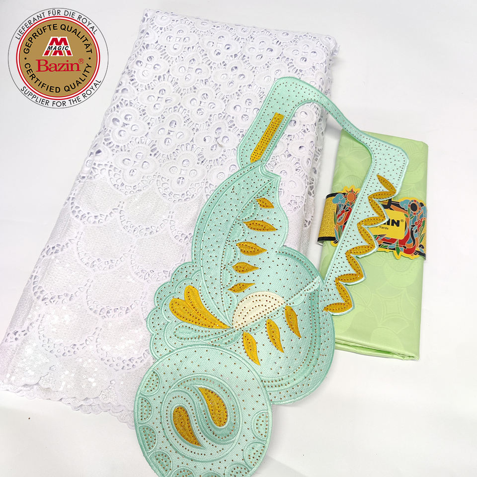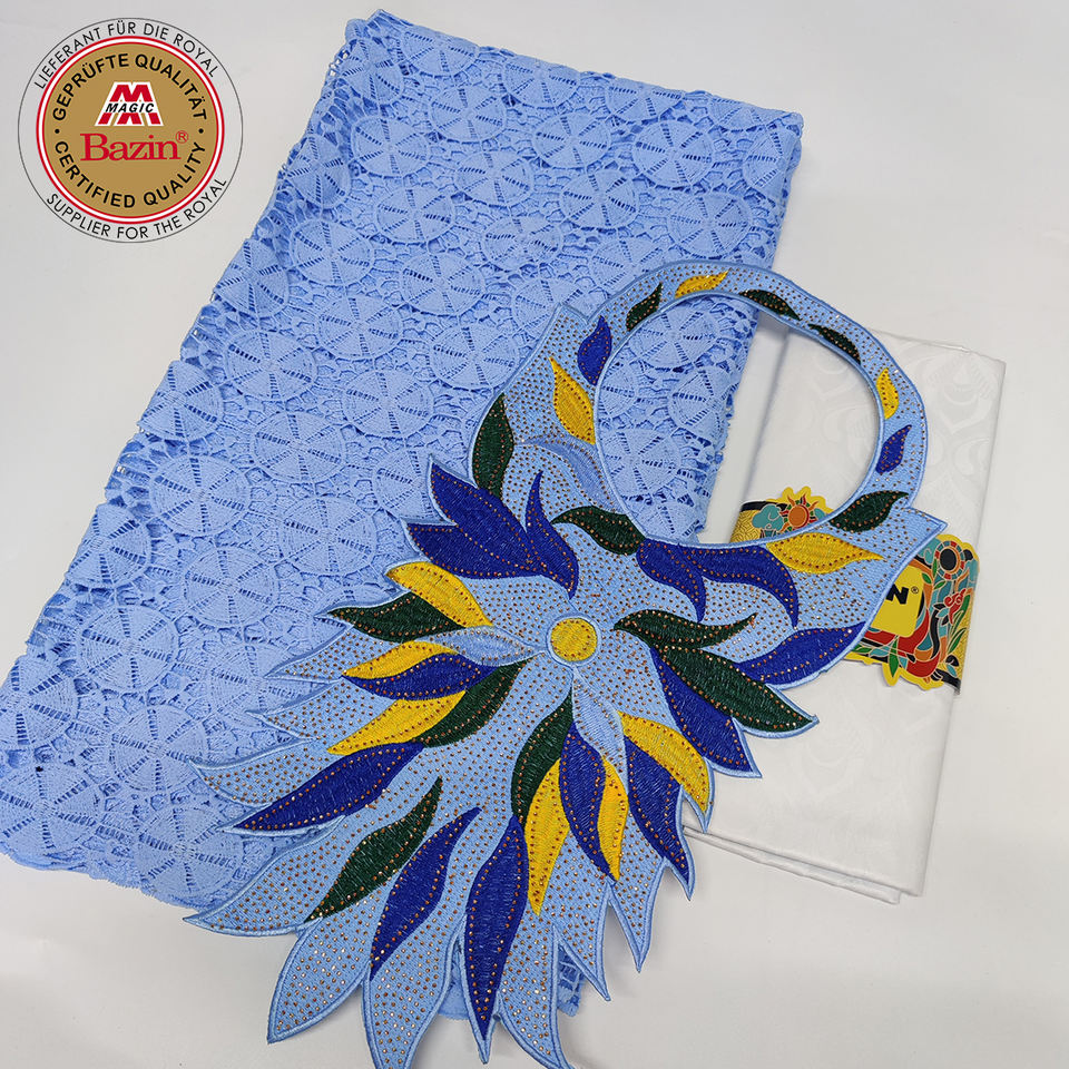 Tessuti africani di pizzo a secco di cotone con colletto per le donne abbigliamento da sposa fatto da te cucito Nigeria Mali puro latte bianco lacci di seta