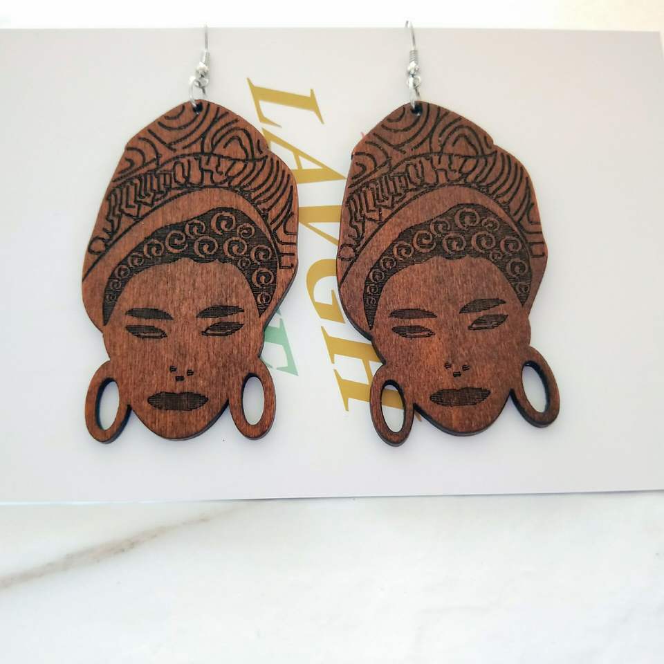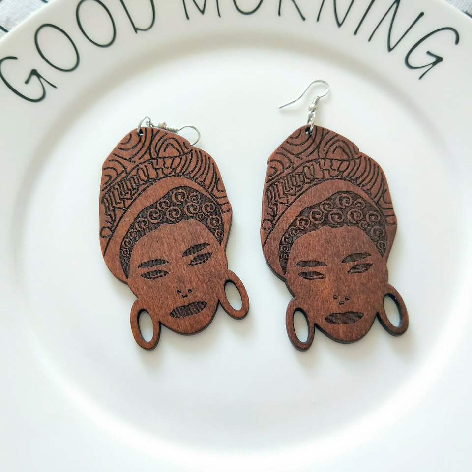 African Exaggerated Fashion Laser Engraved Wooden Brown Vintage Wood Earrings