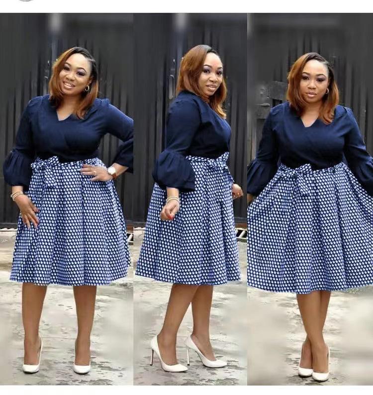 African Fashion Plus Size Women Clothing Dot Printed Cross V-neck Elegant Oversize Mother Apparel A-line Casual Midi Dress