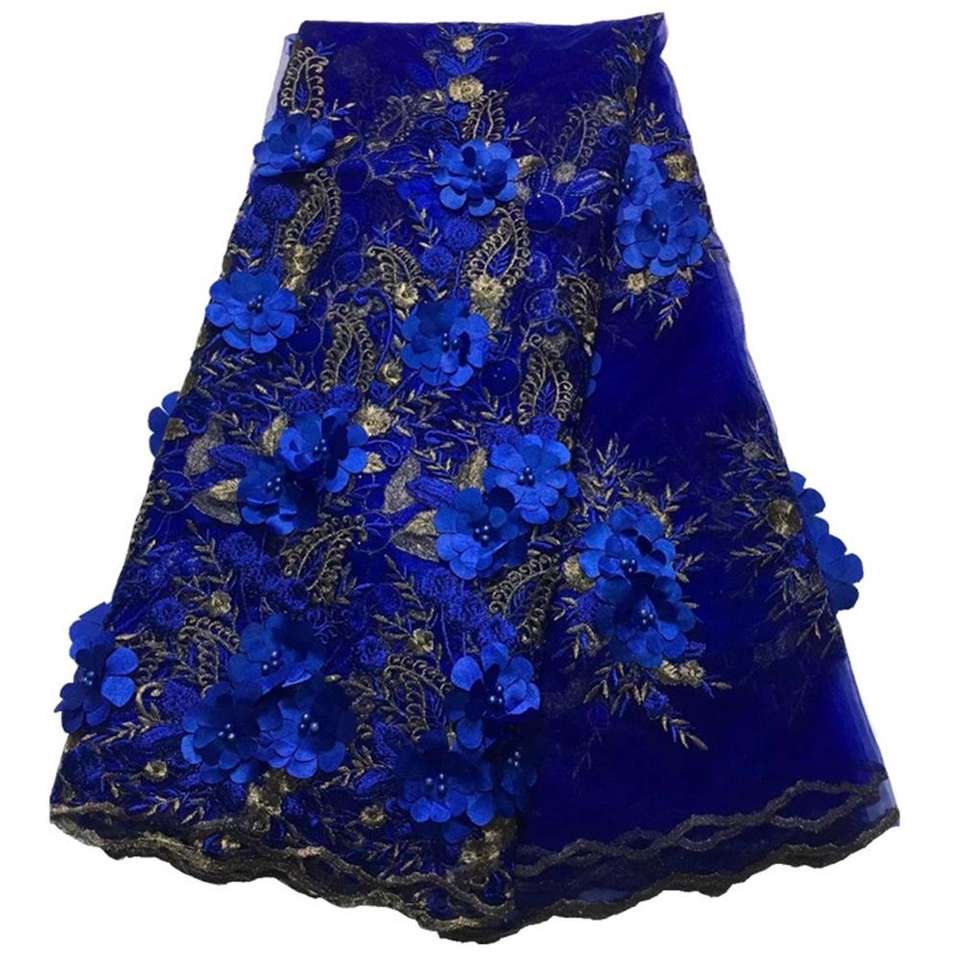 Tessuti in Pizzo Africano Colorato con Ricamo Floreale 3D, Pizzo Francese con Perline per Abiti da Sposa