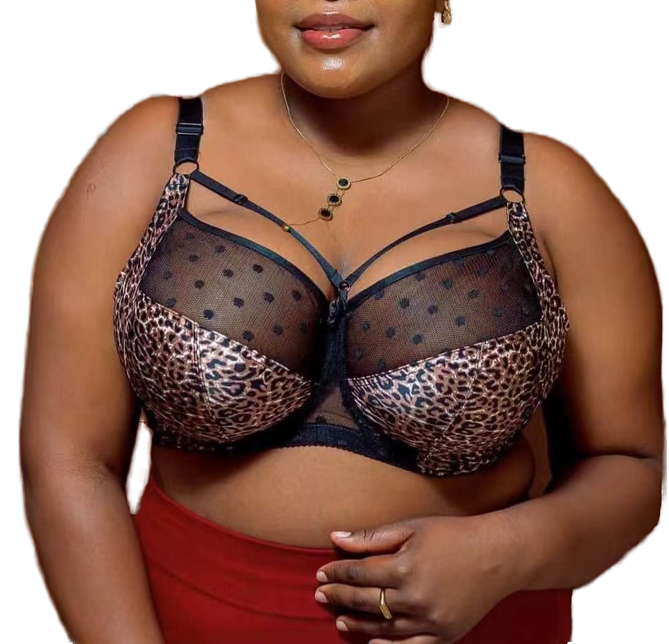Reggiseno sexy taglie forti con stampa leopardata africana e decorazioni a corda - Disponibile