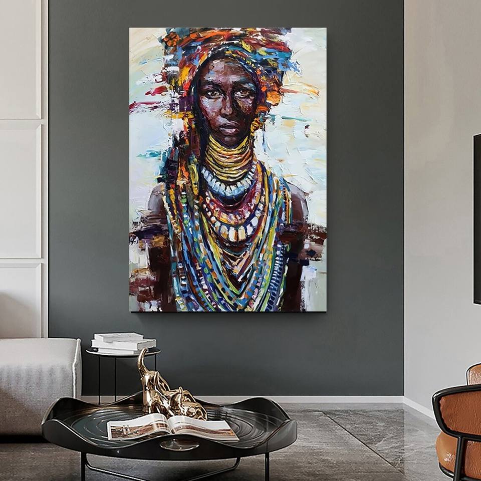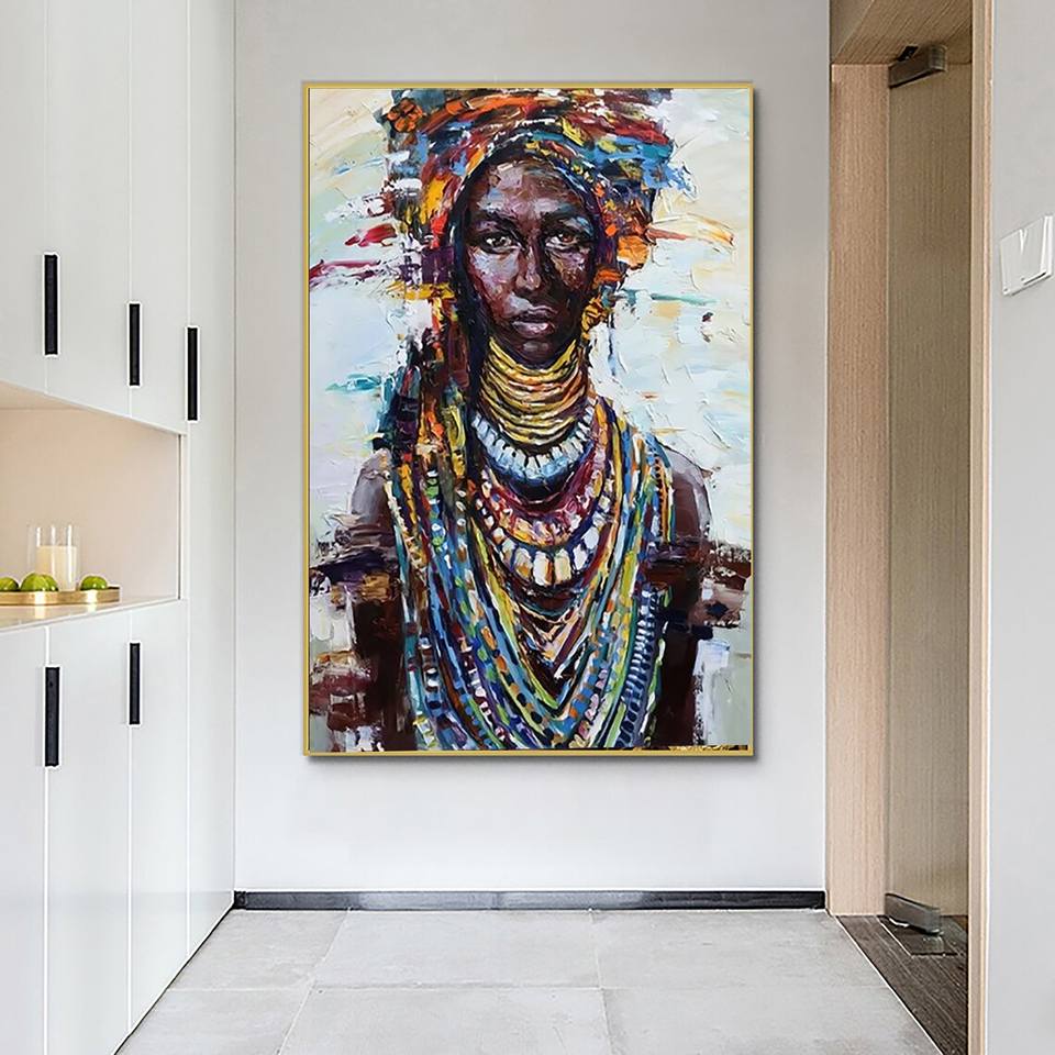African Woman Oil Painting on Canvas Art American Beauty Ethnic Canvas Wall Decor Afro Black Woman Modern Home Decor