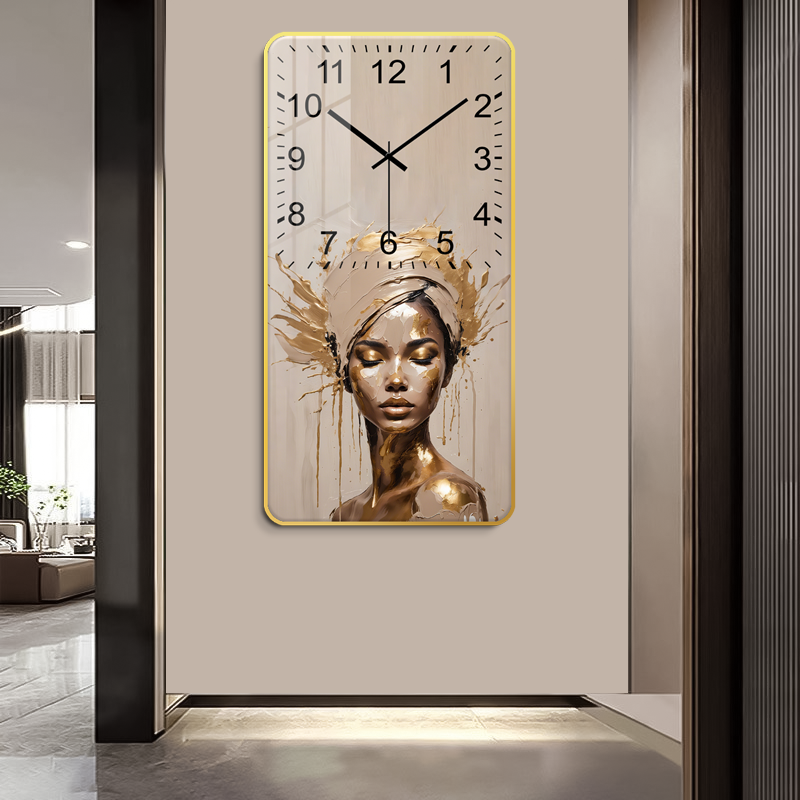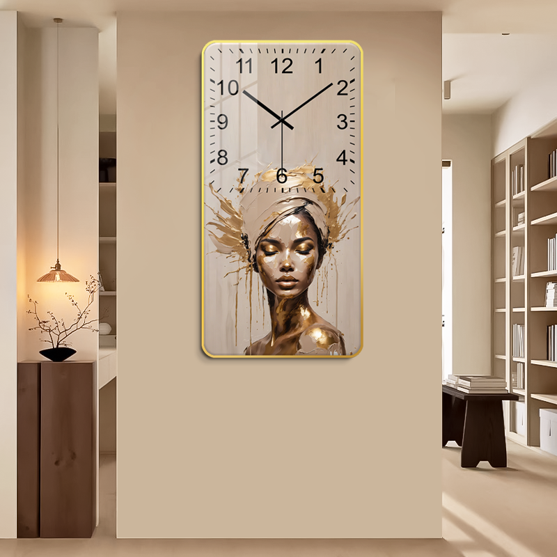 African Women's Decorative Digital Paintings Female Portraits Art Wall Clocks Crystal Porcelain Murals Canvas Frame Mounting