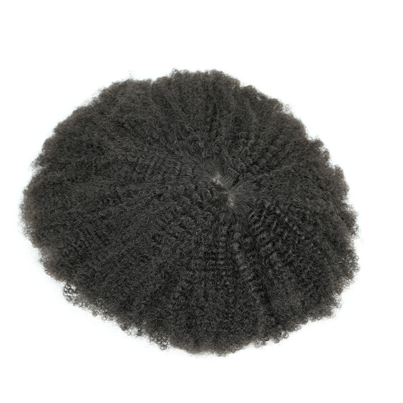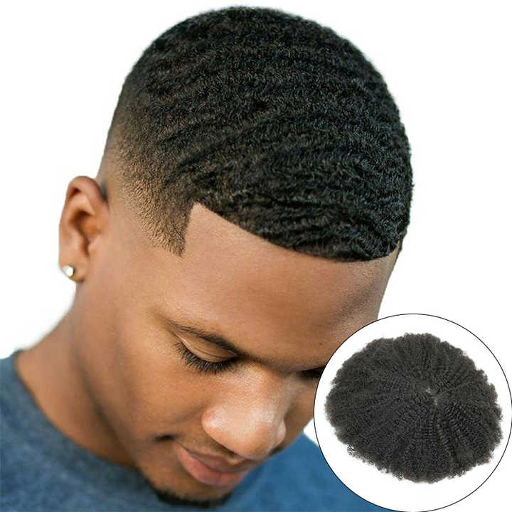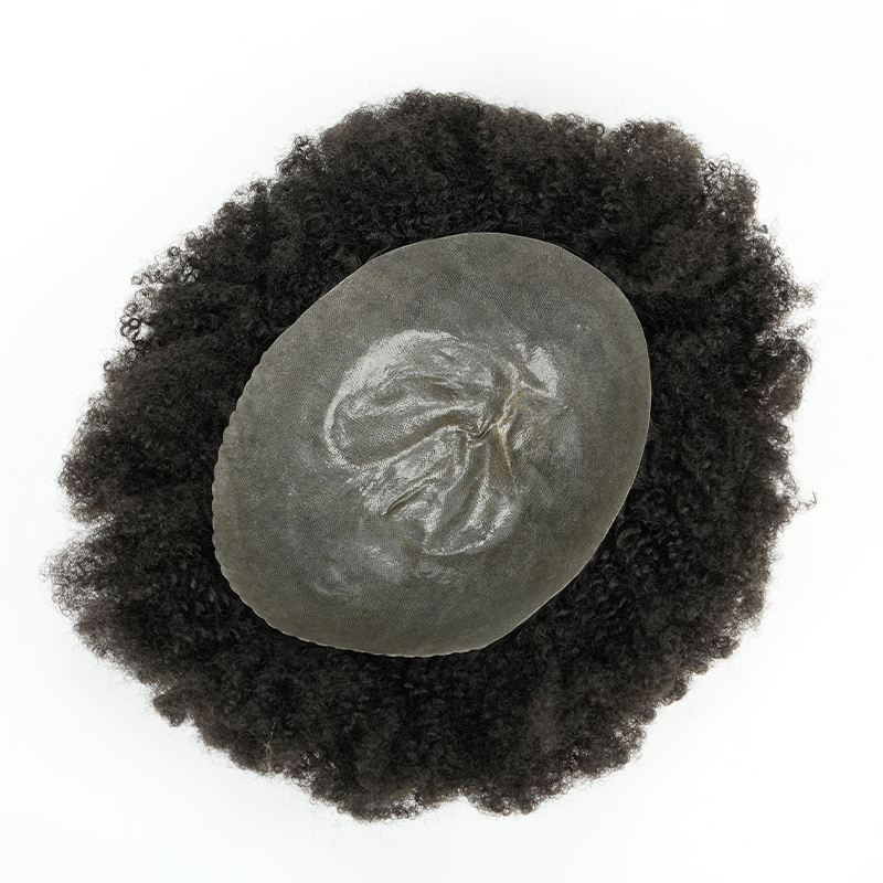 Toupet Afro Riccio 6mm Parrucca Afro con Base in Poliuretano 0.06mm Sistema di Sostituzione Capillare per Uomo di Colore Capelli Umani Indiani Veri