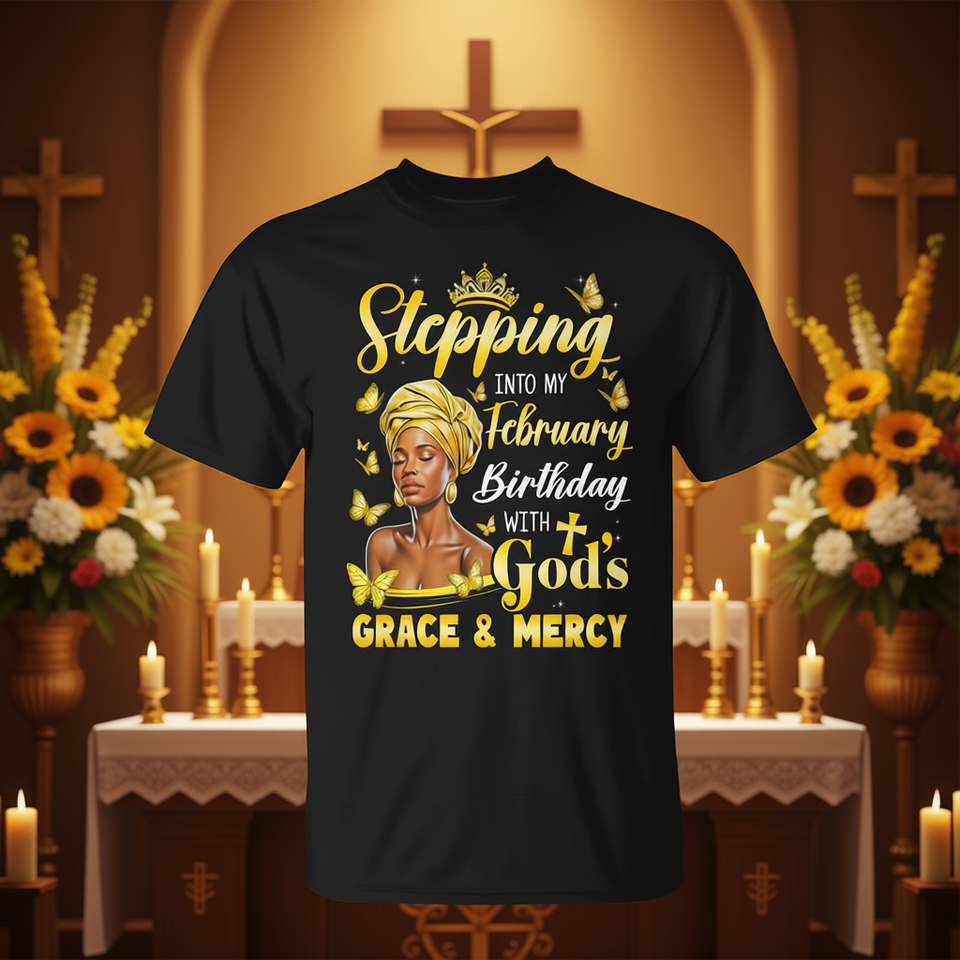 Afro Woman Religious Birthday T-Shirt for February for Religious Celebrations and Personal Use