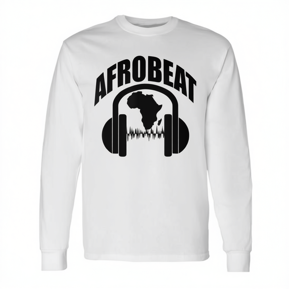T-shirt a maniche lunghe Afrobeat con design a cuffie africane a tema musicale