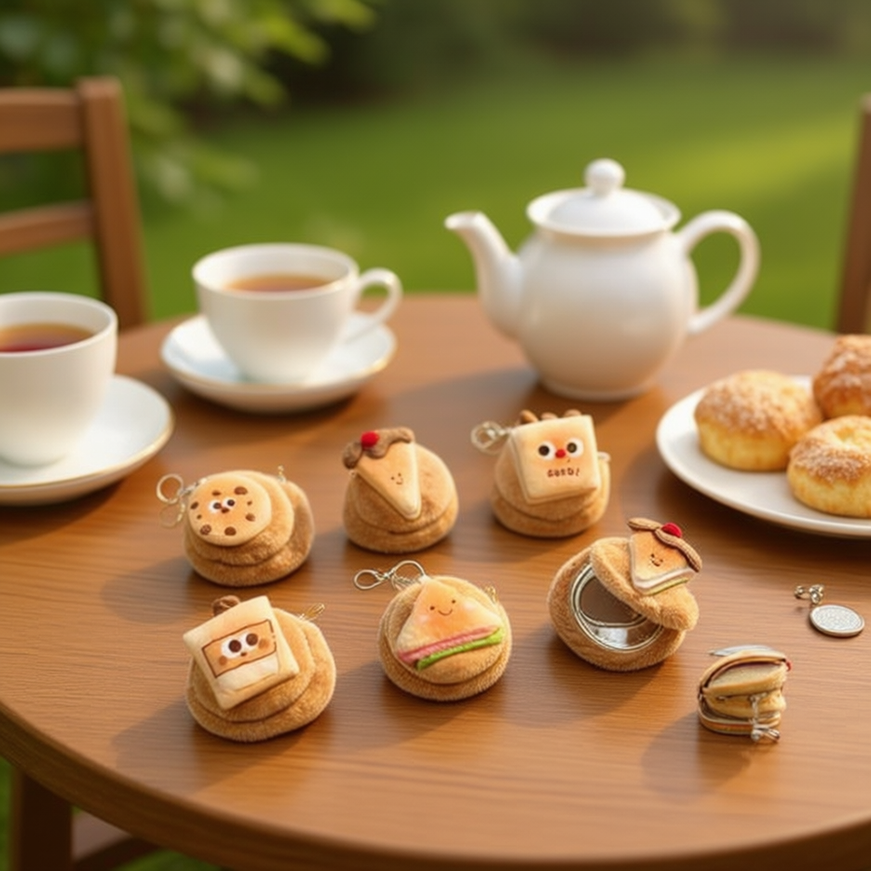 Portamonete a Specchio Serie Afternoon Tea 9Cm con Portachiavi in Peluche e Design di Cibo Carino per Donne e Ragazze