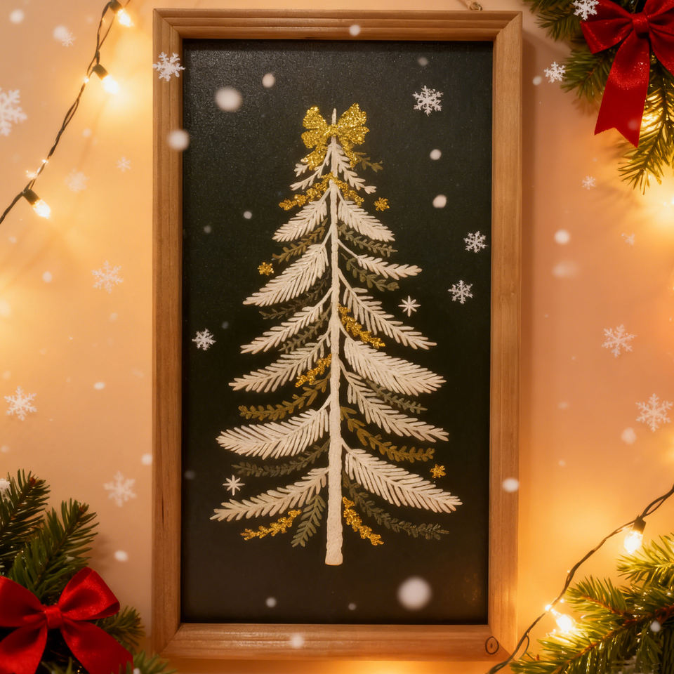 Ahome Wooden Photo Frame With Christmas Tree Printed Art Perfect for Holiday Wall Decoration and Winter Home Decor